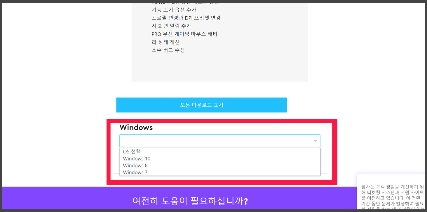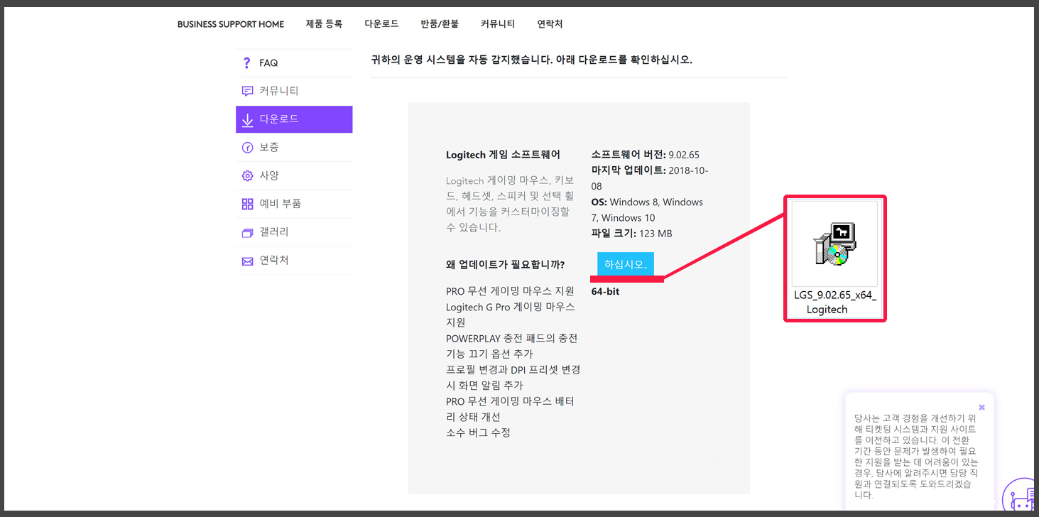 마우스 드라이버 다운로드 사이트에 접속하게 되면 사이트에서 내 컴퓨터의 운영 시스템을 자동 감지하여,