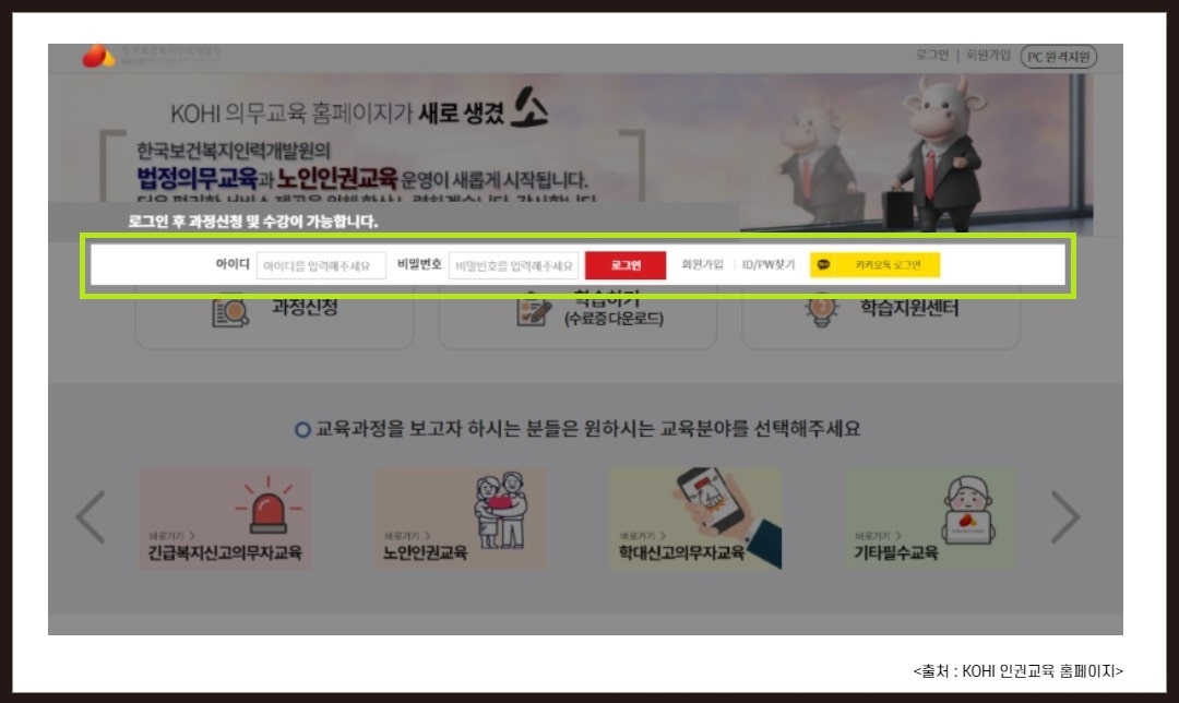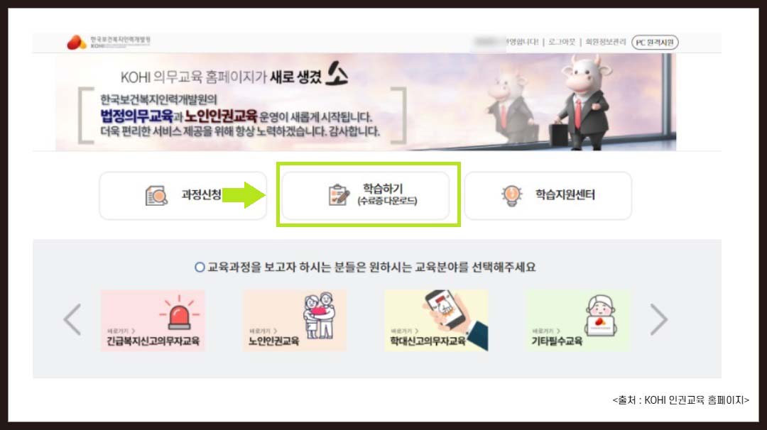 3. 노인 인권 사이버 교육 강좌 수강 방법